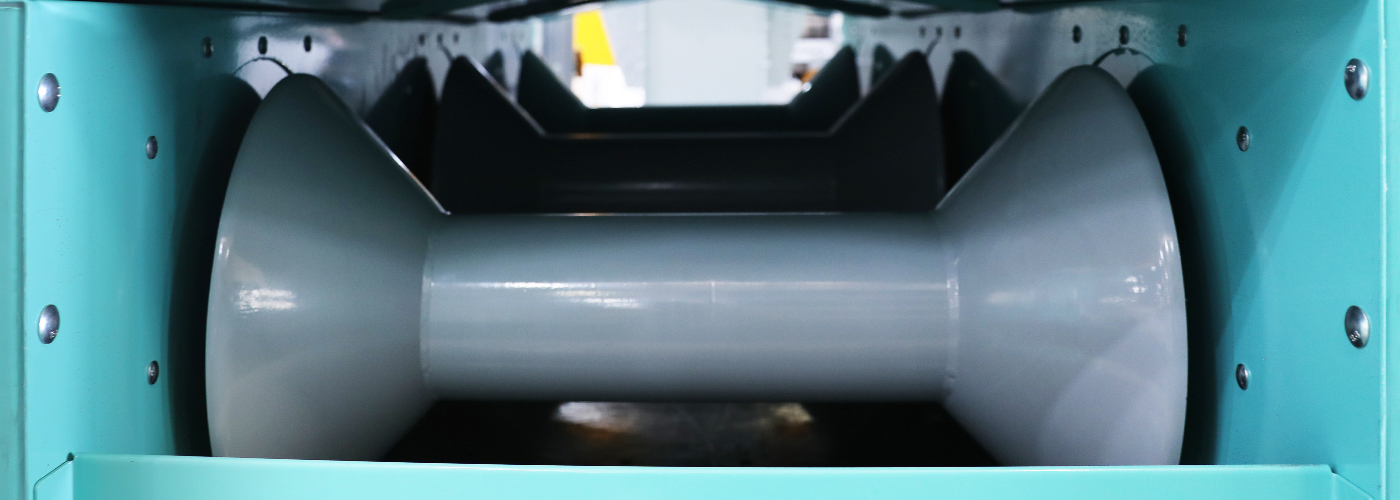 專用制具制成的啞鈴式托輥,對(duì)中性高,動(dòng)平衡好